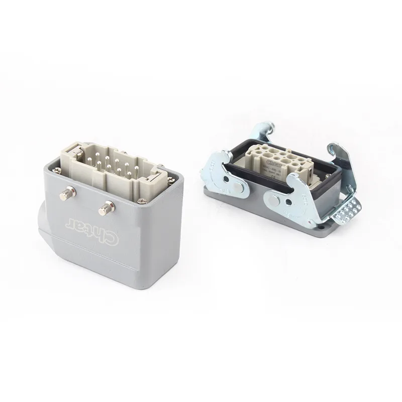 Ta 10-pinski TS priključek za težke obremenitve CHTAR se pogosto uporablja s HE HD HEE, HDD. Je osnova in ženski del ohišja težkih konektorjev. Izdelana je iz aluminija in zasnovana kot enojna zaponka. Uporabniku prijazen tip priključnega bloka za težke obremenitve.