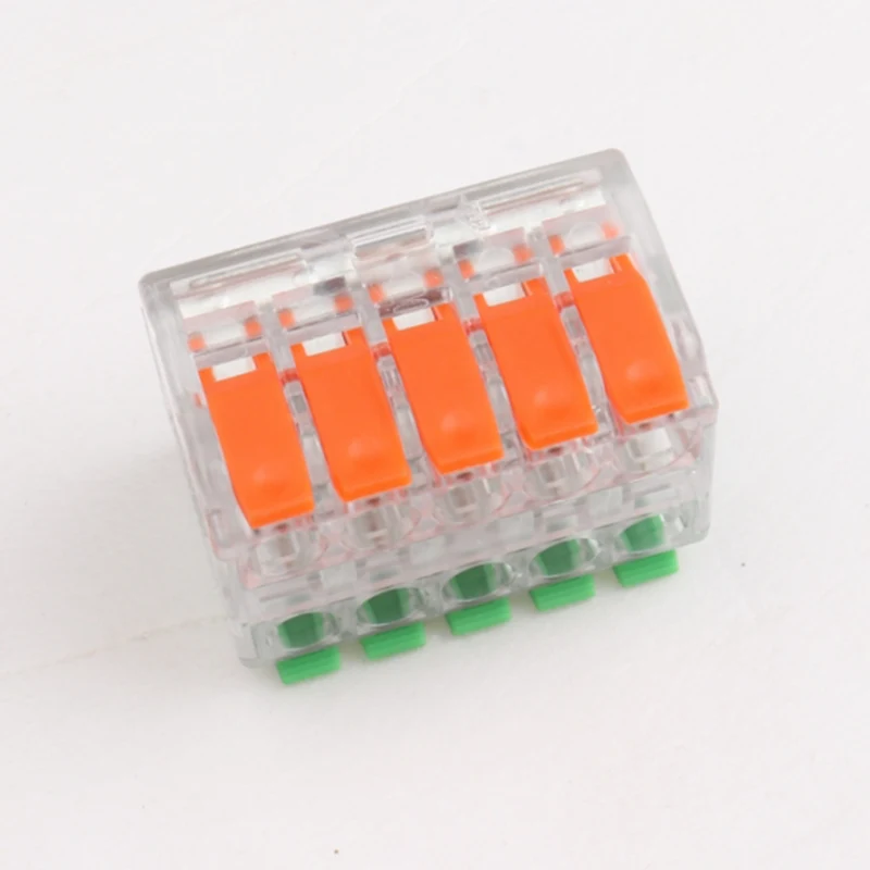 2P 3P 4P 5P dvonivojski hitri priključki za spajanje žice so dvoslojni in imajo ločene povezave tokokrogov, da ustrezajo potrebam majhnih prostorov in več povezav tokokrogov, ki jih ni mogoče medsebojno povezati. Struktura z ročajem omogoča večkratno odvijanje in ponovno povezovanje žic.