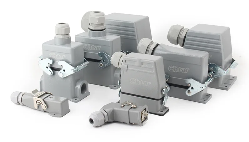 CHTARlahko zagotovi celotno paleto konektorjev za težka dela. Obstajajo ohišja, ki se ujemajo s priključki HA, HE, HD, HEE in HDD ter tako naprej. Delajo tudi z različnimi žebljički, kot so 3, 4, 5, 6, 10, 16, 24, 32 in 48 itd. Tovarna lahko dobavi povezave različnih smeri žice.