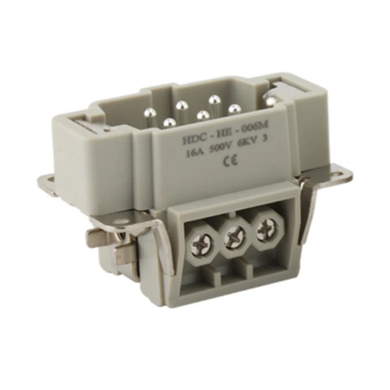 M/F 6-pinski vložki za težka dela delujejo pod tokom 16 A. Za stik z žicami je 16 nožic. Ponuja se za različne delovne pogoje in se priljubljeno uporablja v avtomatski industriji in vrstah žičnih povezav strojev.